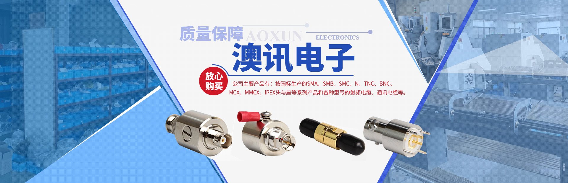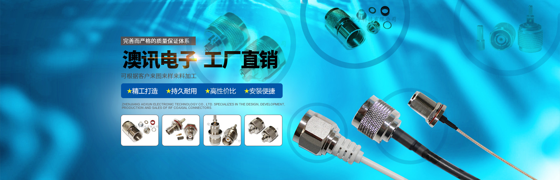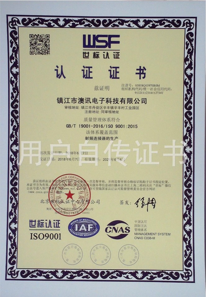 鎮(zhèn)江市澳訊電子科技有限公司,占地面積5000平方米,現(xiàn)有員工近百名,各類技術人員占15%。我公司專業(yè)從事射頻同軸連接器的設計、研制、開發(fā)、生產(chǎn)、銷售。